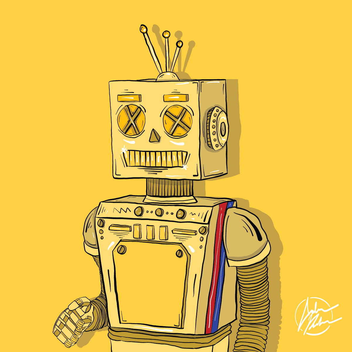 A fun illustration for a packaging client, who wanted a "blinged" out, old school robot character